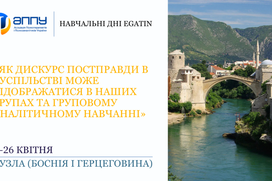 24–26 квітня 2026 року в місті Тузла (Боснія і Герцеговина) відбудуться чергові Навчальні дні EGATIN (Європейської мережі груп-аналітичних тренінгових інституцій) під загальною назвою:
